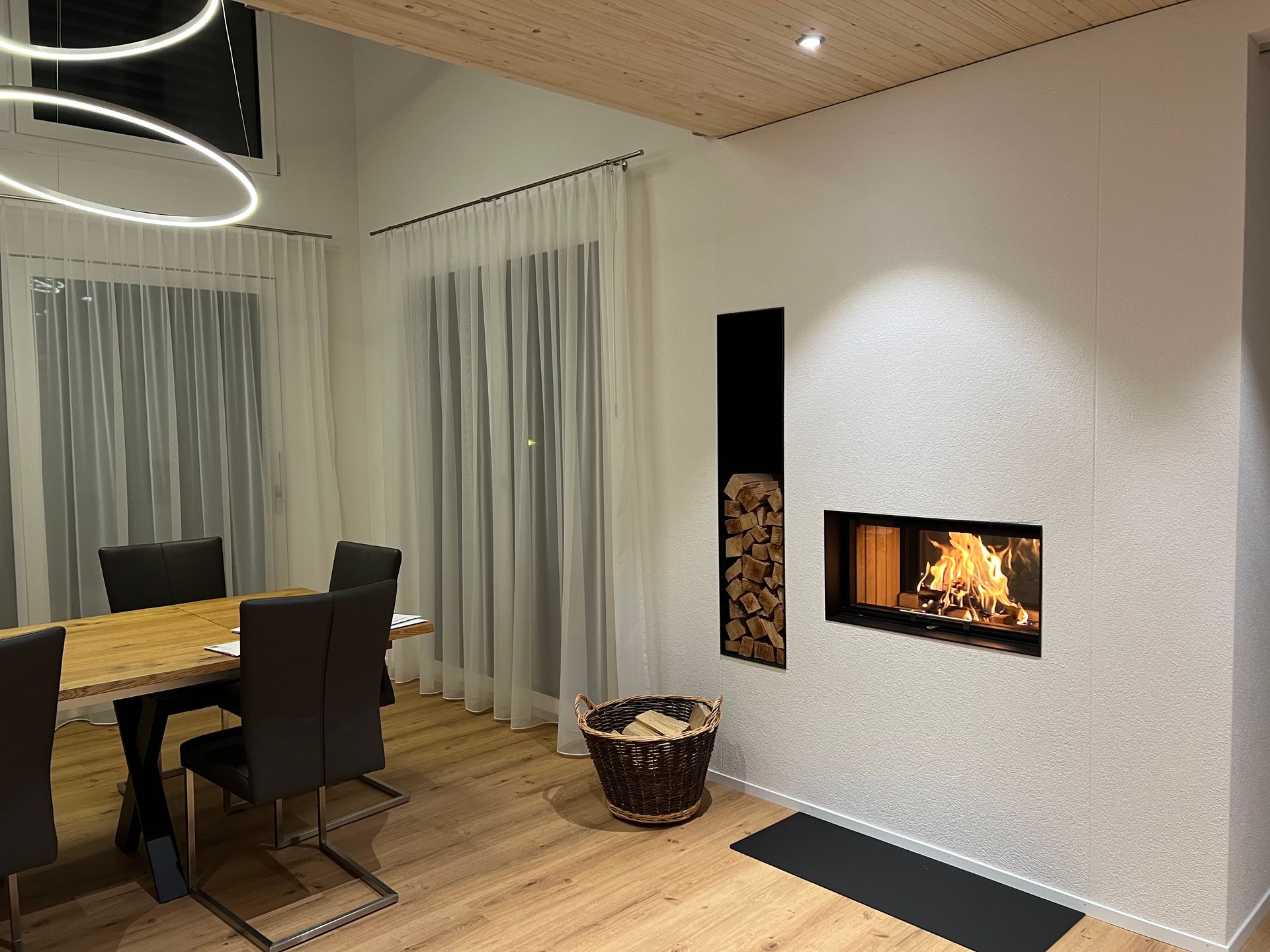 Cheminées sind individuell erstellte Anlagen mit eingebautem Heizeinsatz. Die modernen Heizeinsätze brennen sehr schadstoffarm und effizient. Eine nachgeschaltete Sitzbank erwärmt sich beim Feuern durch Warmluft oder Rauchgase.